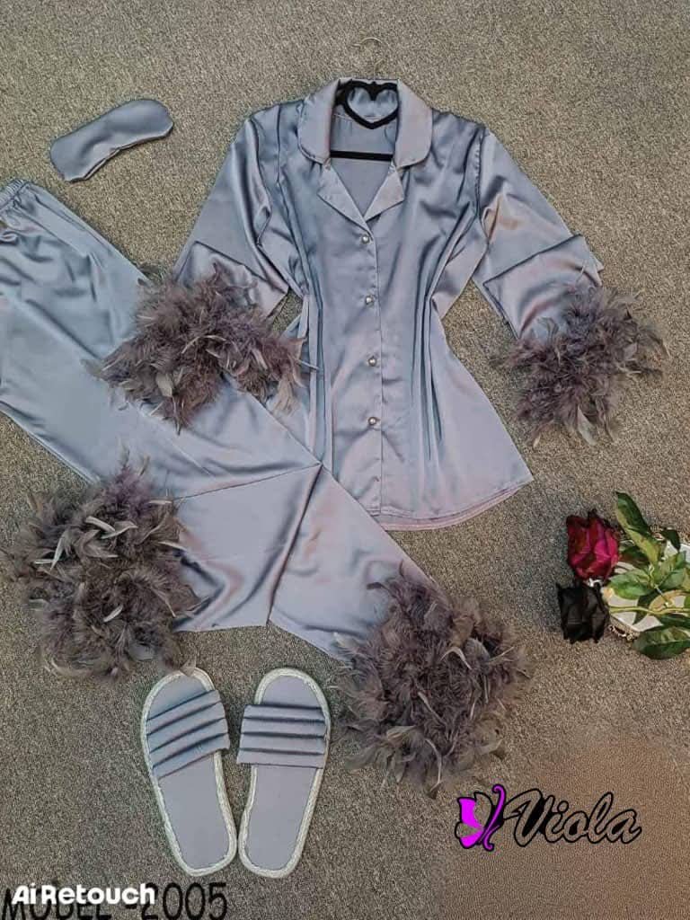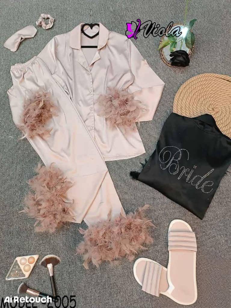 استمتعي بأناقة لا تضاهى مع بيجاما العرايسة المصنوعة من الحرير الفاخر، مع أكمام مغطاة بالفرو الفاخر تضيف لمسة من الدفء والنعومة. تصميمها مزود بأقدام مريحة لتضمن لك حركة سلسة واسترخاء كامل طوال الليل. هذه البيجاما المثالية تجمع بين الفخامة والراحة لتجعلكِ تشعرين وكأنكِ في عالم من الأناقة والرومانسية، سواء في ليالي الشتاء الباردة أو صباحات الاسترخاء في المنزل.