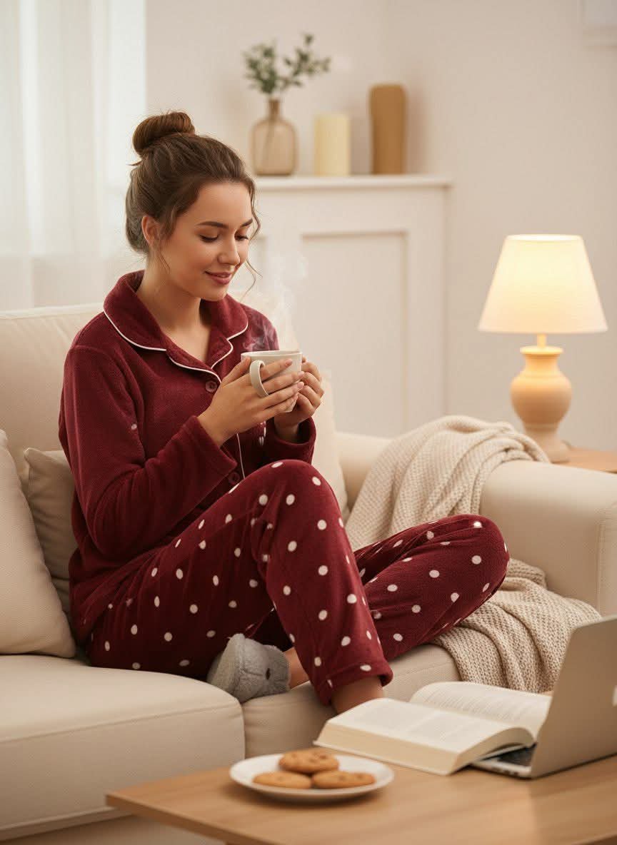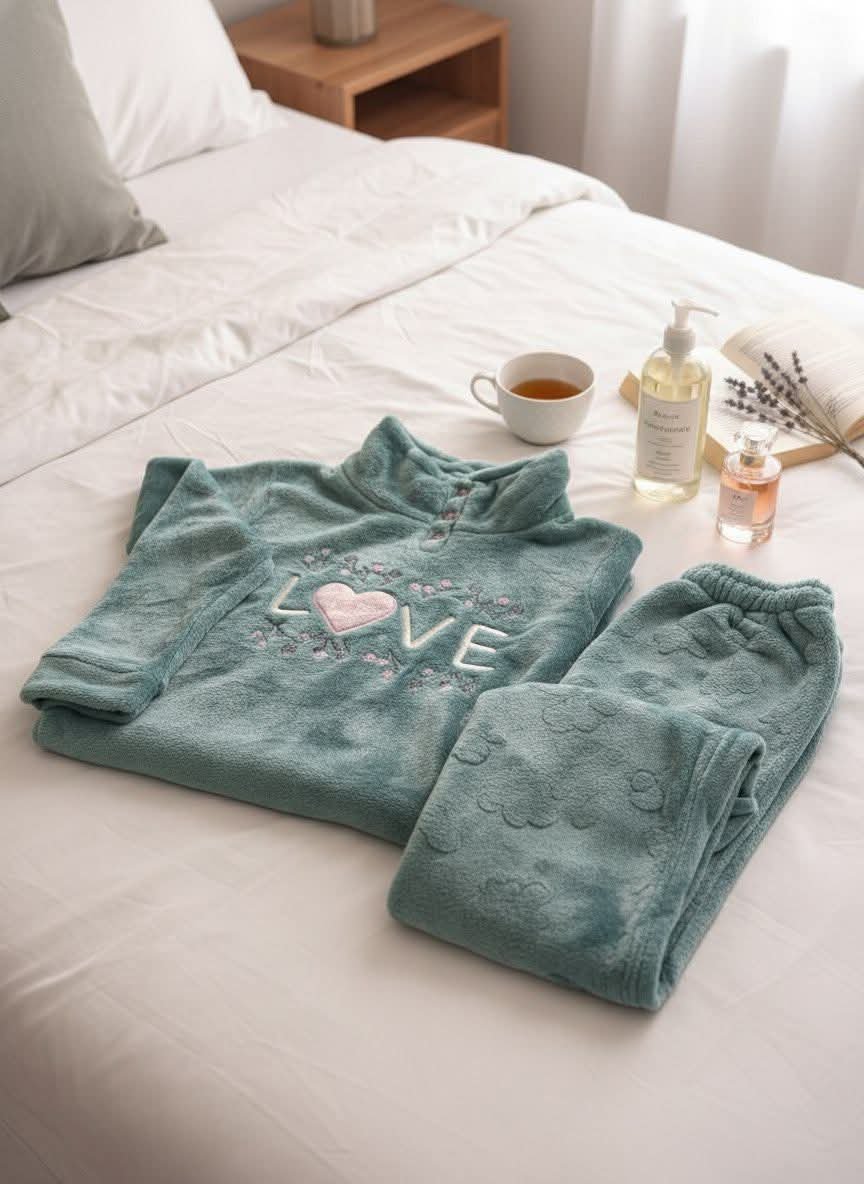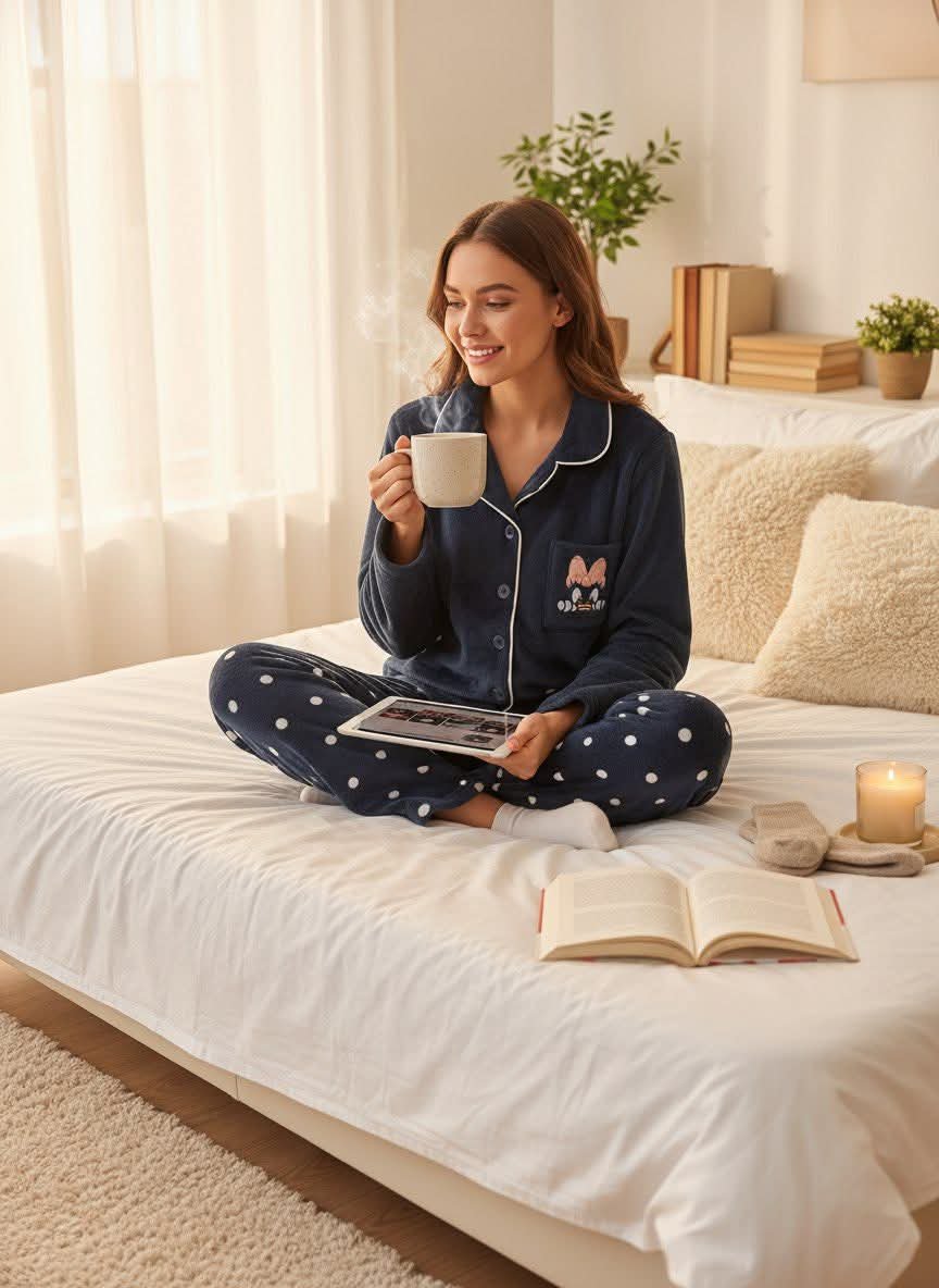 بيجاما مخمل نسائية ثلاث قطع صُممت لتمنحكِ إحساسًا بالفخامة والراحة في آنٍ واحد. مصنوعة من قماش مخمل ناعم بملمس حريري لطيف على البشرة، توفر دفئًا مريحًا خلال الأجواء الباردة.