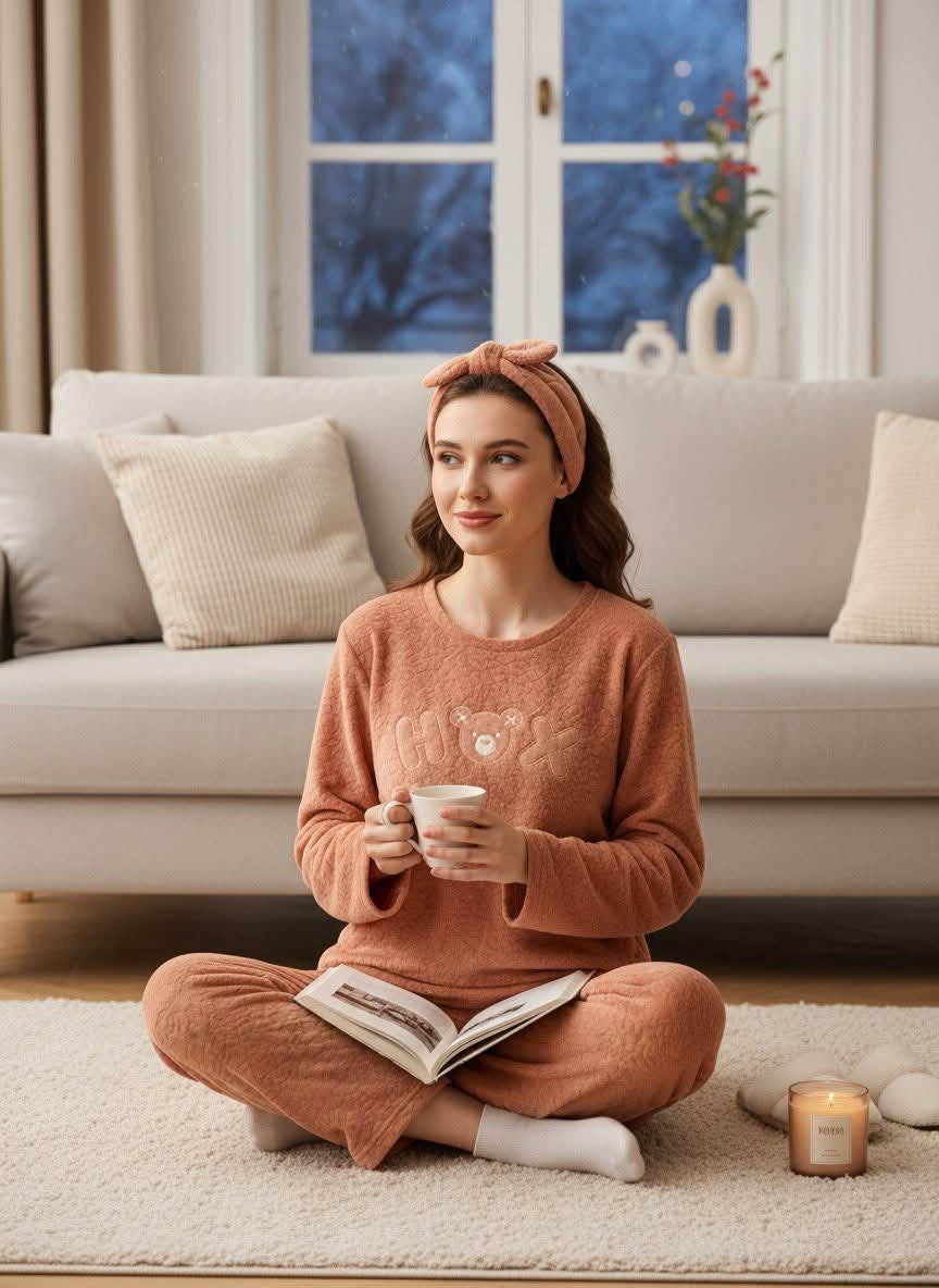 تألقي بالدفء والأناقة مع بيجاما مصنوعة من قماش المخمل الفاخر، تتميز بملمس ناعم ولطيف على البشرة يمنحك إحساسًا بالراحة طوال اليوم والليل. تصميمها العملي والأنيق يوفر حرية حركة مثالية مع لمسة فخمة تناسب الذوق الراقي. تعتبر هذه البيجاما خيارًا مثاليًا لأيام الشتاء الباردة، سواء للنوم أو للاسترخاء في المنزل، حيث تجمع بين الراحة والفخامة في قطعة واحدة.