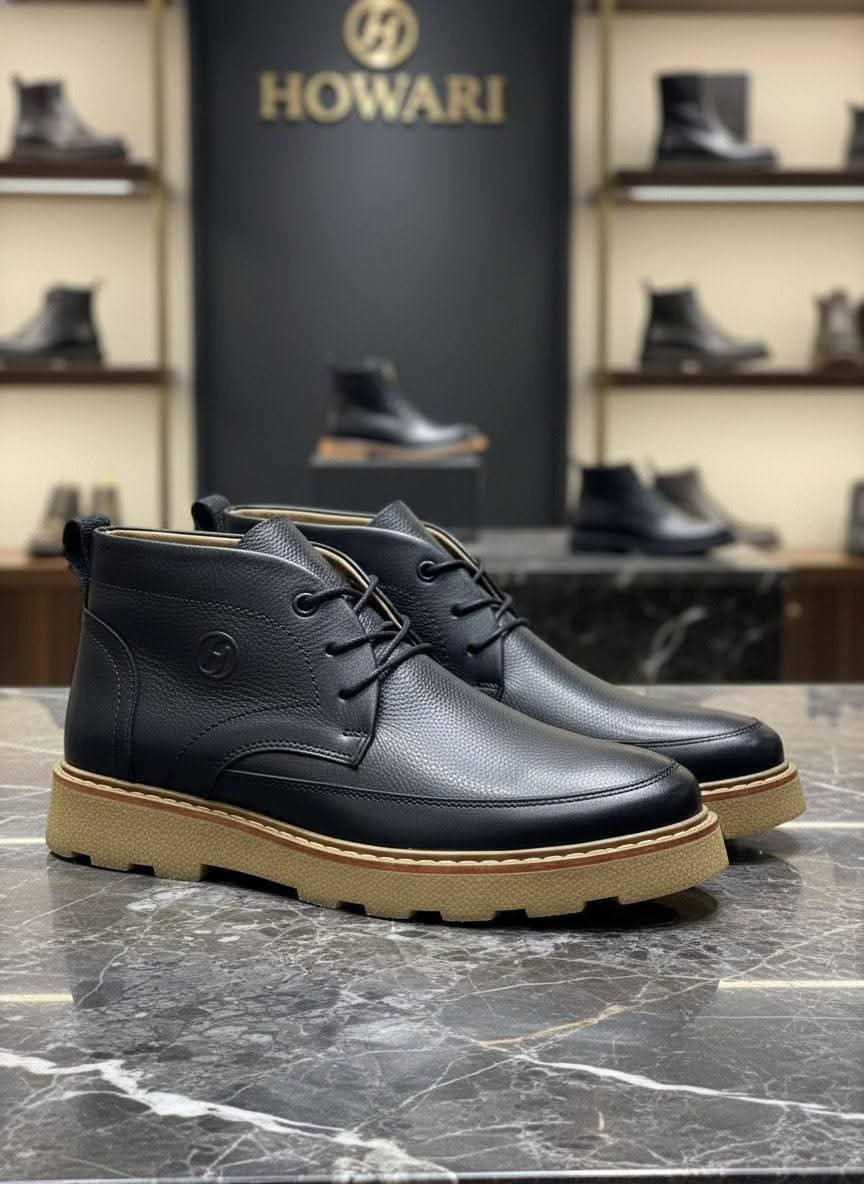 بوط رجالي شتوي صُمم ليتحمل ظروف الطقس البارد ويمنح القدم دفئًا وراحة طوال اليوم. يتميز بتصميمه المتين الذي يوفر حماية جيدة للقدم، مع خامات عالية الجودة تساعد على العزل من البرودة والرطوبة.