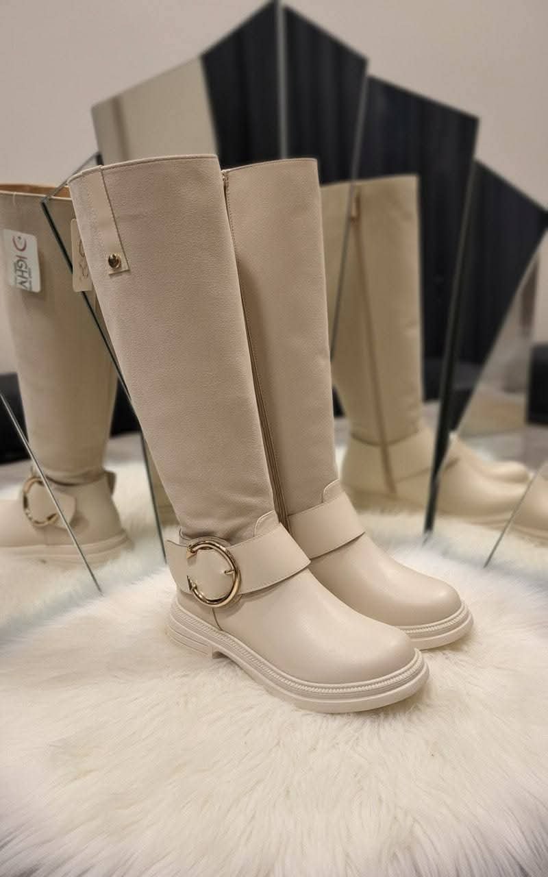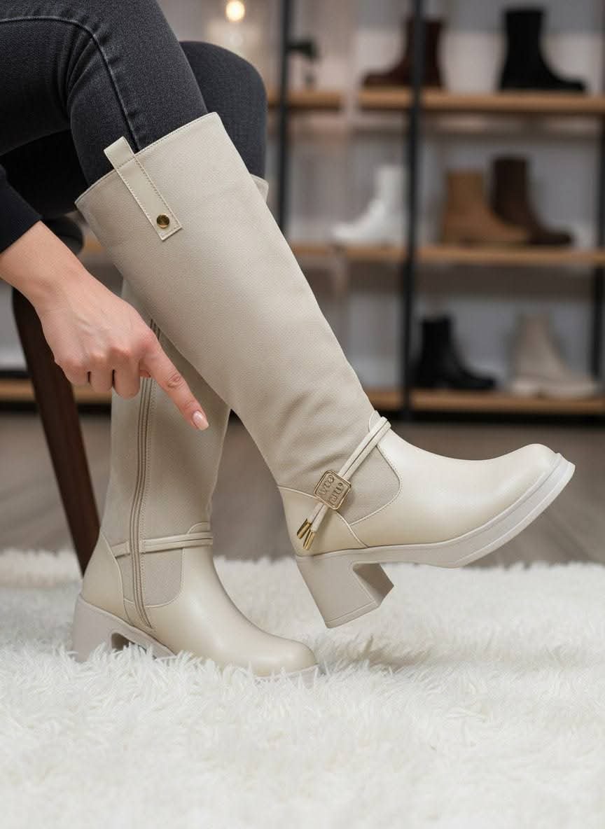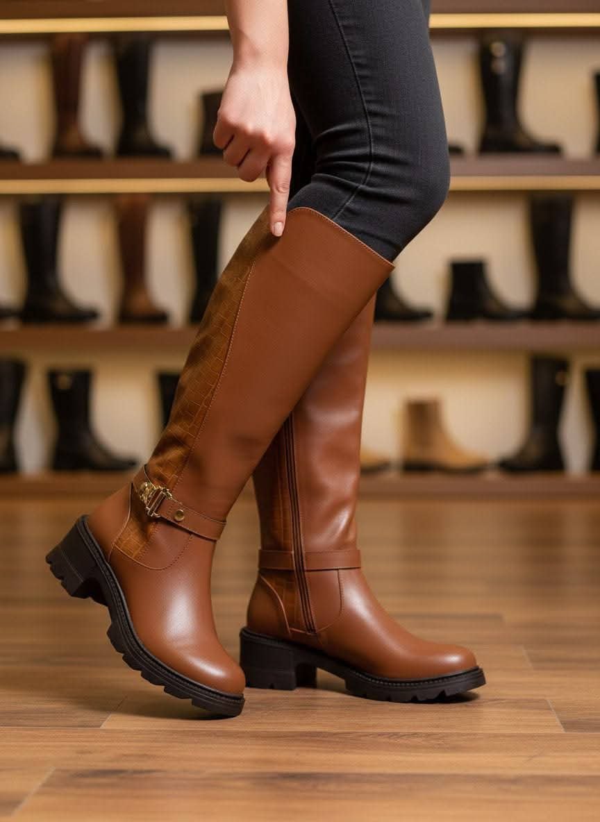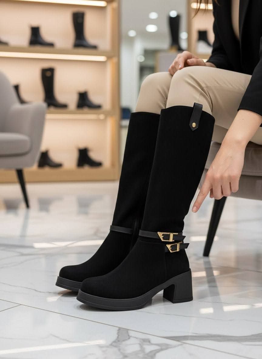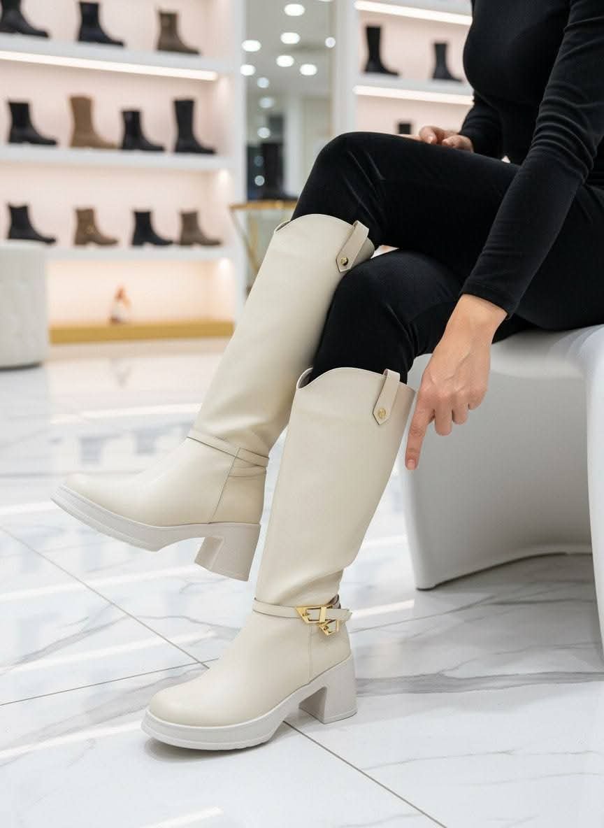 بوط نسائي بساق عالية (طويل) صُمم ليجمع بين الأناقة والعملية، حيث يضفي مظهرًا أنثويًا راقيًا مع توفير الدفء والراحة خلال الطقس البارد. يتميز بتصميمه الطويل الذي يغطي الساق بشكل أنيق ويمنح ثباتًا أفضل أثناء المشي.