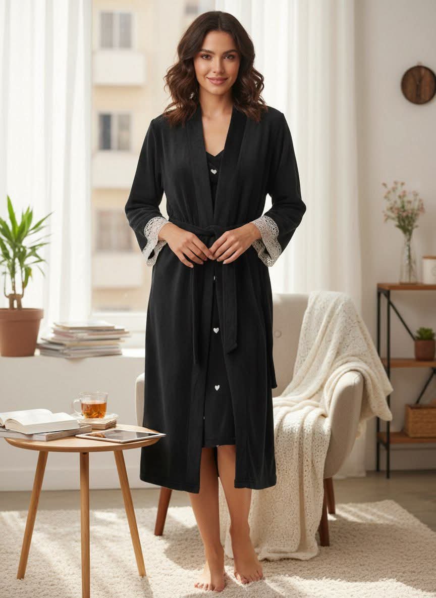 مشلح فرو قطعتين مصنوع من فرو ناعم وعالي الجودة، يتميز بملمس دافئ وفاخر يضفي لمسة أنيقة على إطلالتك المنزلية. تصميم القطعتين يمنحك مرونة في الارتداء وراحة أكبر، مع قصة أنثوية راقية تناسب أوقات الاسترخاء أو الجلسات المنزلية الخاصة. هذا المشلح يجمع بين الدفء، النعومة، والأناقة، ليكون خيارًا مثاليًا للمرأة التي تبحث عن إطلالة شتوية فاخرة ومريحة في آنٍ واحد.